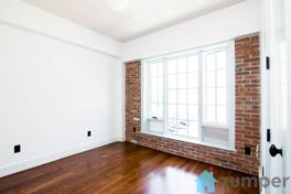 31 Brooklyn Avenue is a well-maintained building with an industrial facade offering modern amenities including elevator, fitness center, indoor/outdoor lounges, roof deck, bike storage, and laundry facilities.