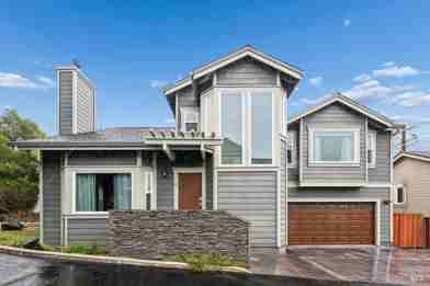 Welcome to one of Mill Valley's most warm and inviting homes, ideally situated on a private cul-de-sac surrounded by white birch, oak, and redwood trees. This spacious two-level residence offers approximately 1,956 sq ft (per tax records) of light-filled living space, featuring cathedral ceilings, expansive rooms, and seamless indoor-outdoor living. The main level features a gracious entry that connects the home's public and private spaces. Arched doorways lead to a grand living room with vaulted ceilings, a marble gas fireplace, and custom window coverings. The formal dining area flows into an open kitchen equipped with granite countertops, stainless steel appliances, gas range, and a center island with casual seating. A powder room and direct access to a full-size two-car garage with abundant storage complete the main floor. Upstairs, the spacious primary suite offers vaulted ceilings, abundant natural light, and a walk-in closet. The luxurious en-suite bath includes a soaking tub, steam and rain shower, dual sinks, heated floors, and a towel warmer. Two additional bedrooms share a well-appointed hall bathroom. A dedicated laundry room with full-size washer/dryer, folding counter, and extra storage adds convenience. Additional features include hardwood floors throughout, central air conditioning, solar panels, modern lighting, and custom window coverings. Outdoor spaces include a landscaped front yard and a private rear deck with hot tub and grillperfect for entertaining. Ideally located just minutes from Strawberry Village's shops, restaurants, and cafes, with easy access to top-rated Mill Valley and Tiburon schools, nearby hiking and biking trails, and less than 15 minutes to the Golden Gate Bridge. Tenant pays all utilities, including hot tub maintenance and gardening. Small dog or a cat negotiable.