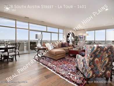 Very rare opportunity in Amarillo to have penthouse living with beautiful full sky views in 3 directions at this La Tour Condo! Enjoy these breathtaking views from every room in this 2 bed, 2.5 bath, 2 living areas with office condo. Perfect for entertaining with a gracious living & dining , fireplace, wood floors, and 9.6' ceilings. Very modern updated kitchen. The master bedroom suite has a private study and features a large bathroom with a standalone copper tub, and abundant closets. This condo includes its own laundry room and HVAC. Soak up the sun on the ample balcony space and experience luxury living at its finest. Schedule your showing today! Two parking spaces included in the garage.