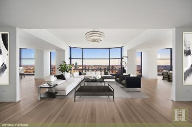A rare opportunity is available to rent this full floor condominium on the 40th floor facing all four directions. If you are looking for the best, this is the highest and largest penthouse available for rent in this unique midtown United Nations location. A tad shy of 6,000 sq feet! With views of the Empire State Building and Chrysler Building, this coveted condominium across the street from the UN has floor to ceiling glass walls with bay windows throughout and a living/dining room overlooking the beautiful East River. Enjoy the boats and yachts passing by going downtown as well as magnificent skyline views at night. Conveniently located all on one level, this home features corner living and dining rooms as well and two corner master bedrooms. The 11'3' ceiling height allows for beautiful sunsets and sunrises every day. There are five bedrooms, all with en suite baths with high quality natural stones, some with windows and separate showers stalls and bidets. The interior finishes throughout include custom hardware, and solid white oak floors. The large eat-in-kitchen is outfitted with Varenna white lacquer cabinetry and high end appliances. There are two maids bedrooms in addition and 6.5 baths in total. This masterpiece is designed by the world renowned Architect, Sr. Norman Foster. Cleverly combining Glass with steel to allow natural light into every home, this building boasts elegance from the motor-court lobby with 16' soaring ceilings and water fall and fireplace, to the wellness center with a 75 foot swimming pool and state-of-the-art fitness facility. A beautiful building that has it all! In addition, this full service property with resident manager, concierge, and valet service also has a conference room, steam, sauna, treatment room, play room, cold storage and bike storage. This penthouse includes valet parking at no additional cost!