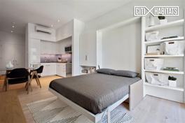 Furnished Studio featuring eight foot windows with Juliet balconies and nearly ten foot ceilings. Clean, modern lines maximize efficiency and make no compromises in functionality. Tasteful finishes are complimented by custom Italian cabinetry, stainless steel appliances and chrome Hansgrohe fixtures. A full package of services is provided by Ollie, including cable, wireless internet, housekeeping, in-home management by Hello Alfred, and community experiences.One month free or one month OP on all 12 and 24 month leases.