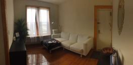 The bedroom has a window that opens, hardwood floors, and good storage. You should fit a king-sized bed in the bedroom.