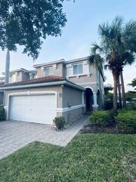 This spacious two-story townhome offers 1,938 square feet of comfortable living space within the desirable gated community of The Colonnade at the Forum. The home features three bedrooms, two and a half bathrooms, a second-floor loft, and a two-car garage. Inside, you’ll find an open layout with wood-style plank flooring throughout the main living areas, neutral paint tones, and plenty of natural light. The kitchen includes wood cabinetry, solid surface countertops, a full appliance package, and a large breakfast bar that overlooks the dining and living areas. Sliding glass doors open to a screened lanai with peaceful lake views, perfect for relaxing outdoors.