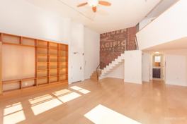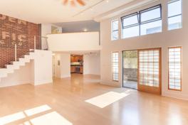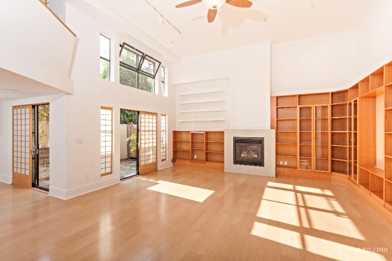 Spacious unit with open floor plan, high ceilings, lots of natural light, gas fireplace, washer, dryer & refrigerator included, private patio. Communal roof deck.