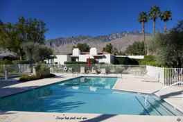 Vacation in this gated South central Palm Springs community, adjoining the Prescott Preserve, with a private access gate for quiet nature strolls! There are 4 tennis courts and 2 pickleball courts close by. Also, enjoy the pool and spa just steps from the back patio with sweeping mountain views.