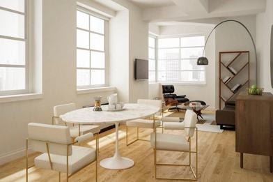 Gorgeous TWO BED, TWO BATH can easily be converted into a spacious and generously appointed THREE BEDROOM. Newly finished hardwood in a lovely light finish plus super high ceilings leave the space feeling fresh and airy. Eat in chef's kitchen with gorgeous quartz counters, oak cabinets and new appliances is a home cooks dream come true. 24/7 Doorman and concierge. Package protection, gym and onsite laundry.