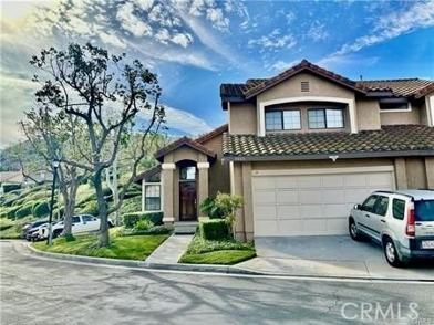 Beautiful 3-bedroom, 2.5-bath end-unit home with an attached 2-car garage and direct access. This spacious property features an open floor plan with soaring cathedral ceilings and wood flooring on the first floor. The family room opens to the kitchen and includes a cozy fireplace, perfect for relaxing or entertaining. The primary bedroom offers a second fireplace, adding warmth and charm. All three bedrooms are located upstairs with carpet flooring. Enjoy a large private patio that opens to a peaceful greenbelt with mature trees, offering privacy and tranquility. Conveniently located next to guest parking and close to shopping centers, parks, schools, the library, and easy freeway access.