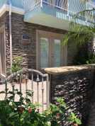 Kitchen has all the upgrades with granite countertops, stainless steel appliances, and pantry. Great home for entertaining. There is a private courtyard with waterfall located off the family room on the first level. Dining area separates the living room from family room/kitchen. There is a private laundry room on the first floor. Full bathroom making it easy to shower off after a beach day.