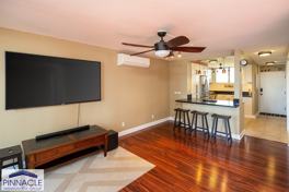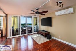 Rarely available furnished 2 bdr/1.5 bth condo in desirable Harbor View Plaza. Fully renovated with corian countertops, stainless steel appliances, tiled backsplash, custom cabinetry, wine cooler, and an extra under counter refrigerator drawers. Updated wood flooring, designer sliding barn and Shoji doors, split AC unit, and GE stacked washer/dryer. Spacious living room and large lanai overlooking the gorgeous views of the ocean and harbor. Includes storage unit and 1 pkg stall. Secured bldg. with a heated pool and BBQ area. Prime location just minutes to the beach, Ala Moana shopping center, Kakaako, restaurants, and more. No pets.
