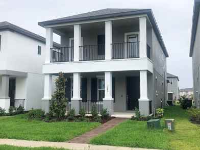 The community features a community center, resort community pool, splash park, open-air pavilion and playgrounds. You will be impressed from the moment you walk in through the main door, the neutral tones give this home a bright and modern touch, the open concept with the 10 foot ceilings adds to the very spacious feel. This gorgeous 2 story home built in 2020 has 3 bedrooms and 2.5 baths, with laminate wood like flooring throughout the first floor and cozy carpet on the second floor. The modern kitchen features top of the line stainless steel appliances, white cabinets and a closet pantry for additional storage, light fixtures, a breakfast bar that overlooks the living room/dining room combo area and plenty of countertop space. On the first floor you will also find a convenient half bathroom for guests and as you make your way upstairs, you will be greeted by a spacious bonus area that can be used as an office or an entertainment area. The laundry room is just past the stairs (Washer and Dryer Included). All bedrooms are located upstairs, the two guest bedrooms have spacious closet space and a shared bathroom. The large master suite offers a walk-in closet, a full private bathroom with dual vanity sinks, a garden tub and a separate step-in shower. This home also has a spacious rear entry 2 car garage with a paved driveway. Don't miss it! Great location with easy access to Florida's Turnpike and FL-417, a 15 to 20 minute drive to Orlando International Airport and conveniently located near shopping, restaurants and entertainment. Pets will be considered. All residents are enrolled in the Resident Benefits Package which includes AC filter delivery, utility concierge, our best-in-class resident rewards program, and much more! More details in our Rental Selection Criteria or upon application. NO SIGHT UNSEEN APPLICATIONS.