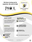 Deposit Installment Program: Pro X is now offering a Deposit Installment Program for eligible residents. The program allows residents to reduce their up-front costs by paying the deposit in monthly installments with rent. We know moving can be expensive. We want to help eliminate some of the burden. There is a $20 monthly administration fee for this program. Deposit charge is payable with the monthly rent amount and is subject to late fees.