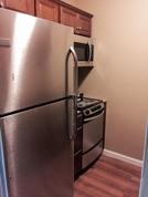 Garden level condo with Huge living/dining area (approx 25 feet) with hardwood floor, fresh paint, ceiling fans, built in wall ac. Galley kitchen with newer cabinets, granite counter tops, and appliances(oven,refrigerator,built in microwave, and dishwasher). Good size bedroom with double wide closet and renovated bathroom with subway tile. Building has coin op laundry, 2 car parking with unit.