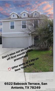 DON'T MISS OUT ON OUR 50 OFF FIRST MONTH'S RENT PROMOTION! OFFER ENDS AT 5 PM ON NEW YEAR'S DAY. ALL APPLICATIONS SUBMITTED BY THE DEADLINE WILL RECIEVE HALF OFF THE FIRST MONTH'S RENT, PERFECT TIMING TO START THE NEW YEAR IN A BEAUTIFUL NEW HOME! Beautiful 4 Bedrooms, 2.5 Bathrooms home for Rent. Located close to Medical center, I-10, HWY 410. This open floor plan offers large island kitchen with granite countertops. Laminate flooring downstairs and all carpet upstairs. Game room upstairs. A lot of room for everyone.