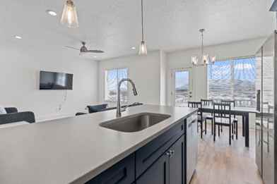 Features spacious living area with high ceilings, all brand-new stainless-steel appliances, high-capacity washer and dryer in the unit, quartz countertops, gourmet kitchen, street parking available, pool, clubhouse, and furnished common areas. Located in the heart of Silicon Slopes, Lehi.