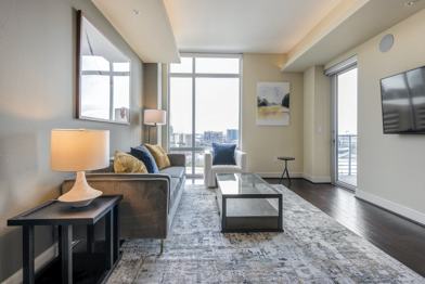 When you enter your Landing home for the first time, you'll notice the modern tones throughout, from the open concept floor-plan to the perfectly paired with the sleek kitchen with stainless steel appliances. Our included furniture and decor are expertly selected and placed for this individual layout, and the mounted Samsung Smart TVs are ready for your enjoyment. Finally, your home is filled with our convenience amenities from the luxurious bedding to the completely stocked kitchen. Every element of your new home invites you to step right into a hassle-free living experience.