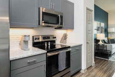 When you enter your Landing home for the first time, you'll notice the modern tones throughout, from the open concept floor-plan to the perfectly paired with the sleek kitchen with stainless steel appliances. Our included furniture and decor are expertly selected and placed for this individual layout, and the mounted Samsung Smart TVs are ready for your enjoyment. Finally, your home is filled with our convenience amenities from the luxurious bedding to the completely stocked kitchen. Every element of your new home invites you to step right into a hassle-free living experience.