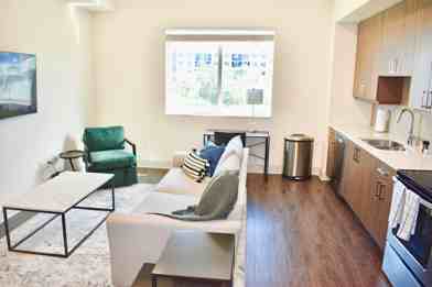 When you enter your Landing home for the first time, you'll notice the modern tones throughout, from the open concept floor-plan to the perfectly paired with the sleek kitchen with stainless steel appliances. Our included furniture and decor are expertly selected and placed for this individual layout, and the mounted Samsung Smart TVs are ready for your enjoyment. Finally, your home is filled with our convenience amenities from the luxurious bedding to the completely stocked kitchen. Every element of your new home invites you to step right into a hassle-free living experience.