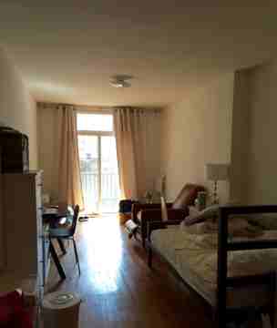 Studio apartment onn the 4th floor with private balcony and wide windows (sliding door that lead to balcony).