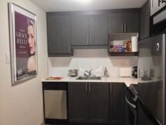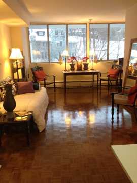 Spacious loft-style bachelor in the Golden Square Mile. Steps to McGill, Mt Royal. Private balcony overlooking the mountain, central AC, washer/dryer on site. Pool, fitness centre, sauna and depanneur in the building.