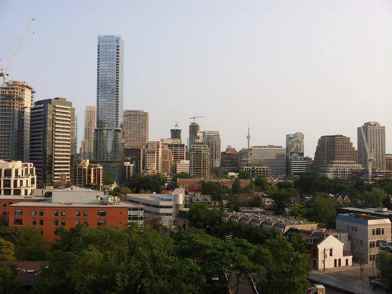 The apartment features a renovated bathroom and kitchen, humongous closets (seriously, there's a ton of storage!), large bedrooms, and two balconies --one of them is in the master bedroom and has a beautiful view of Yorkville and the CN Tower.
