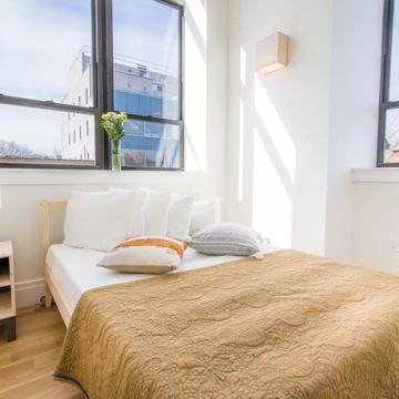 1 Bed / 1 Bath in Williamsburg, Brooklyn. Pets are allowed. Early special for October 1! Lofty one bedroom in converted Catholic School building off the Graham L train. Designer details, vaulted casement windows, stone countertops and stainless steal appliances. Roof deck with 360 views, gym, laundry, elevator and more! 5 minute walk to McGolrick Park and an awesome Sunday morning farmers market not to mention all the great bars and restaurants in the area.