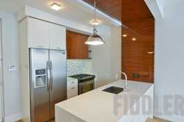- Open chef’s kitchen boasts stainless steel appliances, stone countertops, dishwasher and microwave, with a breakfast bar.