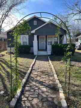 This charming, bungalow-style home features two bedroom and one bathroom and has many of the original details from the 1920's era in which it was built. The wide front porch opens into the light-filled living room with a decorative fireplace and built-ins for storage. A dining area connects the living room with the galley kitchen which includes electric range, refrigerator, and dishwasher. Washer/dryer connections are available in the laundry room which leads out to the fenced backyard. Two bedrooms offer the same hardwood flooring as the living and dining rooms and share a hall bathroom with a clawfoot soaking tub.