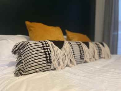 The apartment is warm and welcoming with all new furniture, a Roku TV, a desk and a back deck. The washer and dryer is in the unit for easy access or there is a Laundromat just blocks away with delivery if you prefer.
