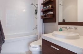- Contemporary glass shower and tub surround in ensuited bathroom