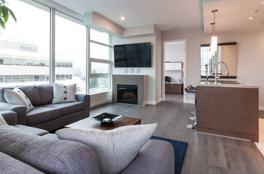 This 2010 contemporary-style concrete low rise building boasts amazing ocean, mountain and downtown views from the 5th floor. This upper unit has floor to ceiling windows, 9ft ceilings and a spacious open floor plan. Take in the views from the relaxing and functional patio featuring a Weber BBQ fuelled by inline natural gas.