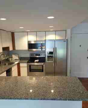 This unit has a beautiful renovated kitchen and bathroom, good-sized bedroom and panoramic views of the city and the Charles River.