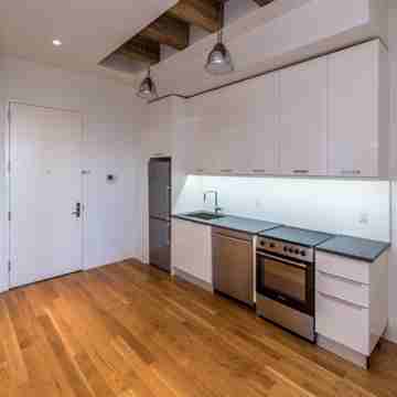 Lofty two bedroom in converted Catholic School building off the Graham L train. Designer details, vaulted casement windows, stone countertops and stainless steal appliances. Roof deck with 360 views, gym, laundry, elevator and more! 5 minute walk to McGolrick Park and an awesome Sunday morning farmers market not to mention all the great bars and restaurants in the area.