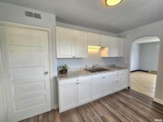 Ranch home - ONLY ONE SMALL STEP INTO THE HOME - 2 bedroom with UPDATED KITCHEN! All new fresh paint. Everything is on one level. Laundry hook-ups, nice sized yard and 1 car attached garage. Owner is a licensed Realtor in Illinois and Iowa.