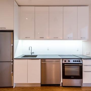 Lofty two bedroom in converted Catholic School building off the Graham L train. Designer details, vaulted casement windows, stone countertops and stainless steal appliances. Roof deck with 360 views, gym, laundry, elevator and more! 5 minute walk to McGolrick Park and an awesome Sunday morning farmers market not to mention all the great bars and restaurants in the area. Pets are allowed.