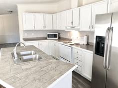 • Large kitchen featuring an island, eat-in dining area, and electric appliances
