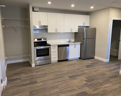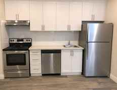 Newly renovated spacious one bedroom plus den, 504sq ft, new appliances, fridge, stove, dishwasher. Drapery included. Apartment building has a newly renovated laundry room. Conveniently located on Eglinton close to Keele Street, shopping, churches, schools and future subway. Parking and lockers available. Hydro not included.