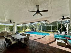 Available 5/1/2026. Fully furnished home with 5 Bedrooms, 3 full baths, 3 car garage and private screened patio with propane heated pool and spa. This 1-story 3-way-split house is located in the desirable community of Lakefield West on the Wanderers golf course. Centrally located close to WEF, International Polo Club, Global Dressage, Wellington amphitheater, shopping, restaurants, Publix. Screened pool and patio. Remodeled kitchen and all bathrooms, dark wood bamboo flooring.