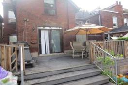 1 BEDROOM Plus Den. A Rare Opportunity To Live In Stunning High Park Home Main Floor Apt. Custom Reno'd, Luxurious, With 9Ft Ceilings, large 1Bdrm+Den. U/Graded Thru-Out W/ Brazilian Cherry Dark Wood Flrs, Crown Moulding, Granite Counters, Shows Like A Model Suite. Slate Floors In Kit & A W/O To Lrg private Deck & Garden. New Bathroom With Marble Walls & Foor. Custom Closets In Lrg Bdrm with plenty of storage for clothing. Must Be Seen! Walking Distance To Junction, Dundas, High Park, Ttc, Starbucks, and many local restaurants.
