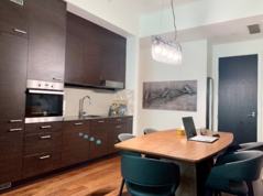 Notes: the unit is on the 7th floor. 1 parking can be added for $250/month. Beautiful condo in the prestigious Icône project, located in the heart of downtown. Open concept living and dining room, large balcony adjacent to living room, 1 bedroom, 1 bathroom High quality materials and abundant windows. 24hr concierge & security services. Immediate occupancy.1 min walk from Bell Center. 2 min walk from Metro station. 5 min walk from McGill University. Surrounded by shops, grocery stores and restaurants. Furniture and appliances included. Very new building with gym, pool, terrace, activity center, tennis court etc. Perfect for students and young adults. Security and management at ground floor.