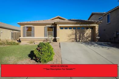 MOVE IN SPECIAL: $900 OFF 1ST MONTH'S RENT!!! Beautiful Single Level 3BD/2BA plus Den home located in popular Sarival Village. The kitchen has granite countertops and all appliances. Dining room in kitchen. Master ensuite has a large walk in closet and private bathroom with dual sinks. Located down the hall from the master are two spacious guest rooms and a den that opens to great room. Washer and dryer are included! Enjoy sitting under a covered patio in the backyard with extended pavers and grassy area, perfect for entertaining! Backyard is very private with extra high block wall in back. Sarival Village is a great community near the Goodyear spring training stadium, with easy access to shopping and restaurants, schools and more. Don't let this one pass you by!