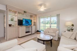 Available off-season and for season, furnished. Not available for annual rent. 1st-floor condo with golf views. You will fall in love with the bright and open interior of this home and its many desirable details, such as volume ceilings, large windows and sliding glass doors, light neutral colors, flat-screen TVs in both bedrooms, and a curved, flat-screen 4K TV in the living room. The kitchen has been updated with stainless steel appliances and spacious cabinets, while the master suite features a king-sized bed and access to the expansive screened-in patio which overlooks the golf course. Ind
