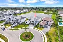 Discover the epitome of elegance and modern living in this 6-bedroom, 5-bathroom waterfront home situated on a cul-de-sac. This home offers a host of upscale features including a serene waterfront lot with picturesque views. Inside, enjoy an impressive interior with 11' ceilings, European-style cabinetry and quartz counter tops, adding an air of sophistication. The in-law suite with a private entrance provides independent living space, while 8 security cameras and 35 speakers throughout the home ensure peace of mind and an immersive audio experience. The gated community entrance exudes elegance and prestige. Total sqft: 7,122.