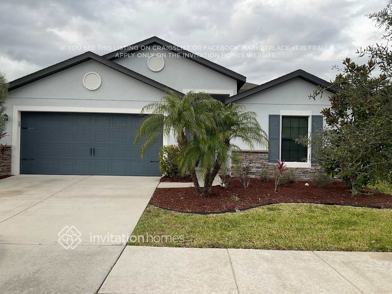 Home Features and Amenities: Air Conditioning, Fenced Yard, Garage, Granite Countertops, Kitchen Island, Long Lease Terms, Open Floorplan, Pet Friendly, Primary Bedroom on Main, Single Story House, Smart Home, Stainless Steel Appliances, Tile, Walk in Closet, W/D Hookups, and professionally managed by Invitation Homes.