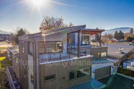 MISSOULA – Side by side, tri-level duplex just 2 blocks from Russell Street! This modern and spacious unit features 2 bedrooms, 2 bathrooms and almost 1,500 square feet of living space. This unit boasts large picture windows, LVP hard wood flooring, custom window coverings, Aprilaire ceiling fans, soft close cabinets and drawers, metal hand railings and staircase lighting, and a custom sliding barn door to the utility room. The primary bedroom features a walk-in closet and an ensuite bathroom with a custom tiled shower. The kitchen offers stainless steel markless appliances, a farmhouse sink, knotty alder cabinetry, quartz countertops, and a spacious island for convenience. On the third level, you'll find a sunroom with a gas fireplace and an oversized deck with sunrise views through the Hellgate Canyon and sunset views across Missoula. Additional property amenities include a utility room with a stackable washer and dryer and a utility sink and an attached double car attached garage with room for storage and baseboard heating for those cold winter months! Centrally located just blocks from the Milwaukee Trail, river access and outdoor recreation, shopping, workout facility, and neighboring brewery.