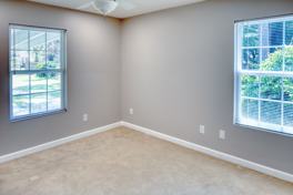 Interior highlights include tile floors in the kitchen and bathrooms, wood floors in the living and dining areas, and cozy carpeting in the bedrooms.