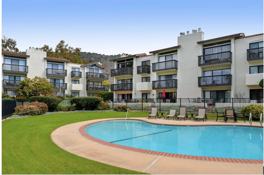 Enjoy resort living year round! Beautiful gated community of the World Famous Polo Fields! This end unit affords stunning views of the ocean and main polo playing field for exciting and convenient viewing. 2nd bedroom has been converted to a den, and easily transforms back to a bedroom with an existing murphy bed in the closet, and a pocket door that closes off the living room for privacy. Great outdoor space and resort-like feel with 3 balconies Leading out from 2nd story unit, cozy gas fireplace in living room.