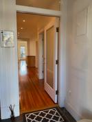 Capitol Hill Neighborhood: One bed/bath garden apartment located two blocks from the Stadium Armory Metro (rail and bus), that comes with one off-street parking space. This historic renovated home features 9 ft. ceilings, (original) pine hardwood floors throughout, recessed lighting and a private deck. There's a large galley kitchen, a five-burner gas range, microwave oven, dishwasher, garbage disposal, oak cabinetry and granite countertops. This energy efficient space offers programmable central air/heat, ceiling fans in the living and bedrooms, a 40-gallon hot water heater and a stackable washer/dryer. There's a dining/office space and three closets--the largest is suitable for storage. Unfortunately, pets are not welcome in order to maintain the original pinewood floors.