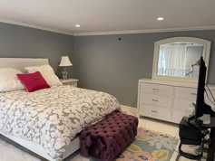 The apartment was completely renovated in 2018. Everything is new. The first sleeping area has an adjustable king-size bed, closet, and large-screen smart tv. The second sleeping area is a loft with 65 ceilings and a queen size bed, dresser, and smart tv. Kitchen with Island seating. Leather L-shaped couch with a large-screen smart TV with electric fireplace. Home office desk and upright Piano. The building has a 10,000-square-foot gym, steam room, massage room, pool table, 24-hour concierge desk, a movie room, a lounge area with free WiFi, and a Laundry room. One terrace connects to the gym room and a rooftop deck with views of the Hudson River and the Statue of Liberty. The building requires the board approval of all tenants.