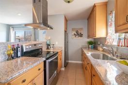 This beautiful recently remodeled 2 bedroom 1 bath condo features a gourmet galley kitchen with stainless refrigerator, stainless range, stainless chimney hood, granite countertops and breakfast bar! Other features include a remodeled bathroom with granite topped vanity and quartz shower surround, upgraded modern laminate floors, recessed lighting, central heating, shared laundry room, community pool, 1 carport parking space and one parking permit.