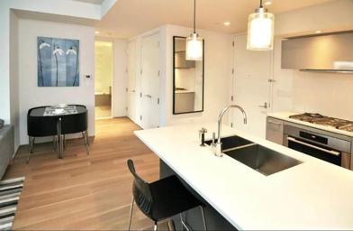 Located in Greenwich Village close to Union Square, steps to Subway station. This is a 19 story building built in 2010, the unit is on 14th floor. This modern , voluminous, bright one-bed and one-bath condo is an elegant yet comfortable home. The kitchen features top-of-the-line appliances and Caesarstone counter tops, and garbage disposal. Central AC, Bosch Washer and dryer in unit are an added convenience. Close to NYU ! - Hardwood Floor - Miele kitchen appliances - Caesarstone countertops - Bosch washer and dryers - 24 hours door man service -Fitness center, multi-media lounge, and a landscaped courtyard One month rent as commission paid by tenant . One month rent as security Deposit ! No pet allowed !